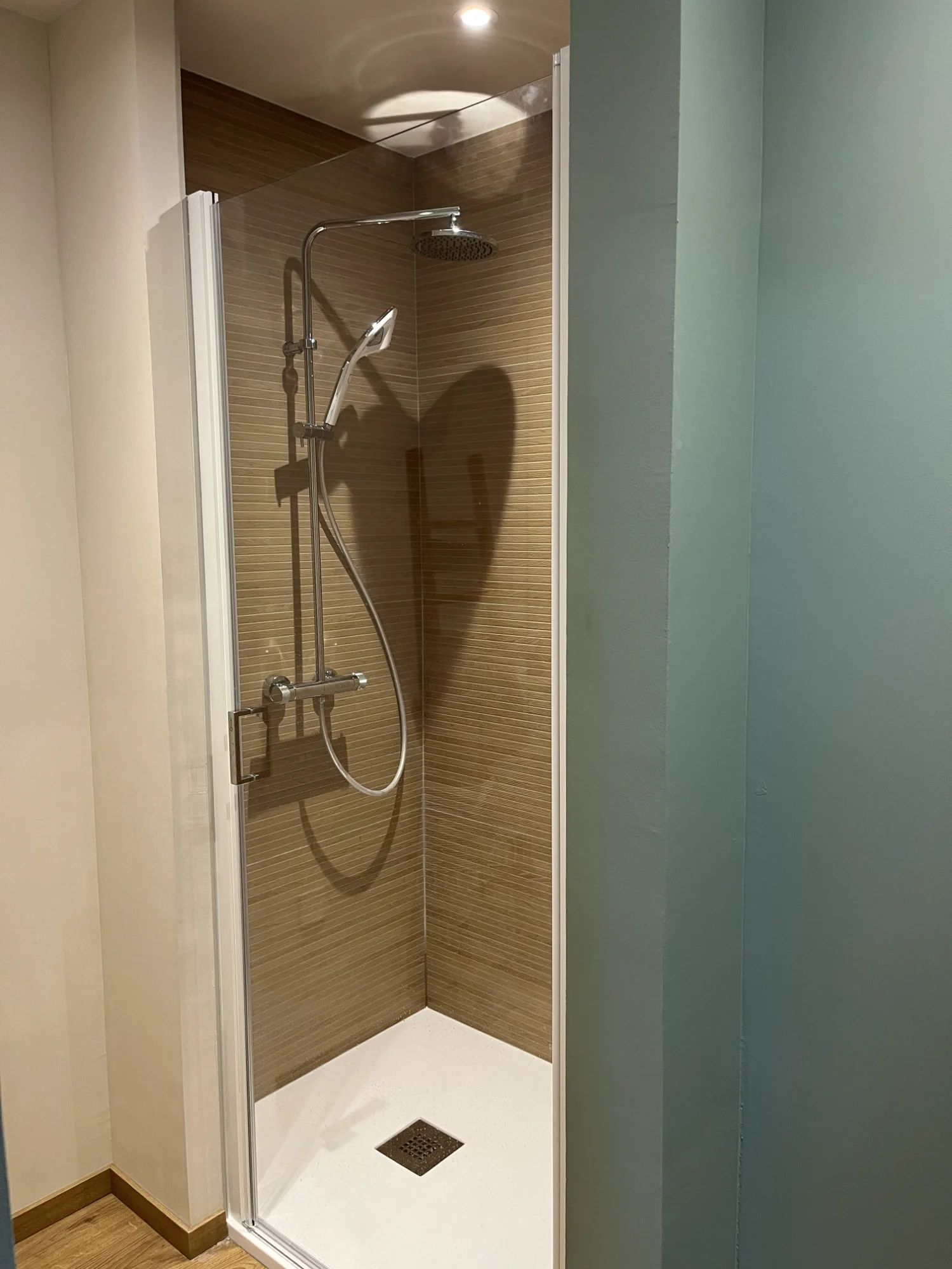 Dans la douche, la pose de carreaux grands formats permet de créer un espace sobre et moderne, tout en facilitant l’entretien au quotidien. L’association de ces deux types de revêtements offre un équilibre entre authenticité et modernité.