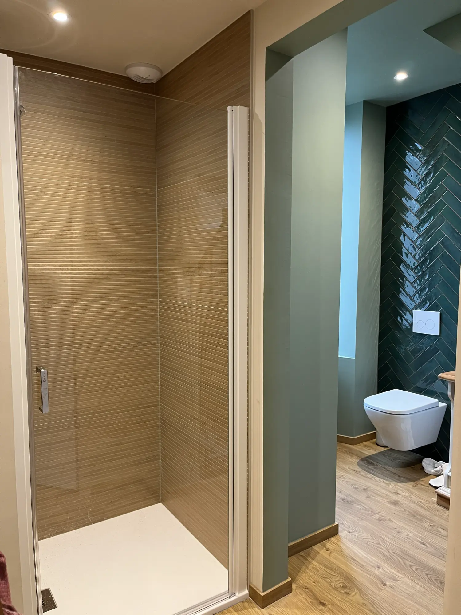Cette transformation a permis de convertir un ancien rangement en une salle de bain fonctionnelle et agréable, où le travail de pose du carrelage joue un rôle essentiel.